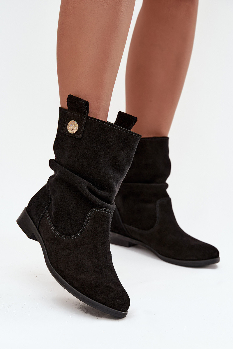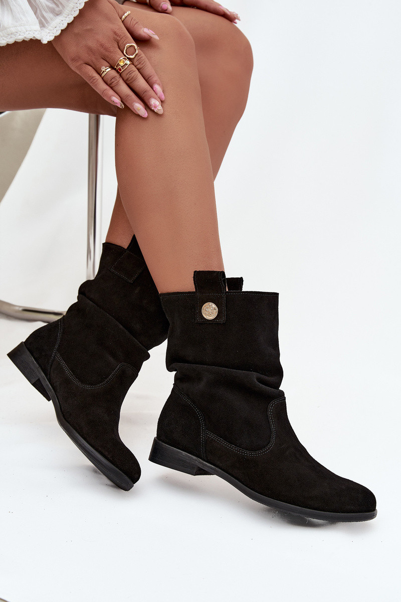 dámske kožené semišové topánky so volánmi zateplené Zazoo 4210 čiernej farby