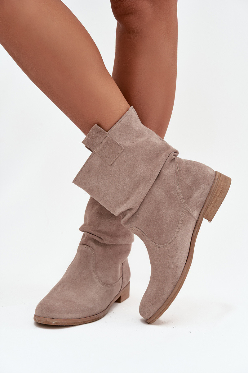 dámske kožené semišové topánky so volánmi zateplené Zazoo 4210 pieskovej farby