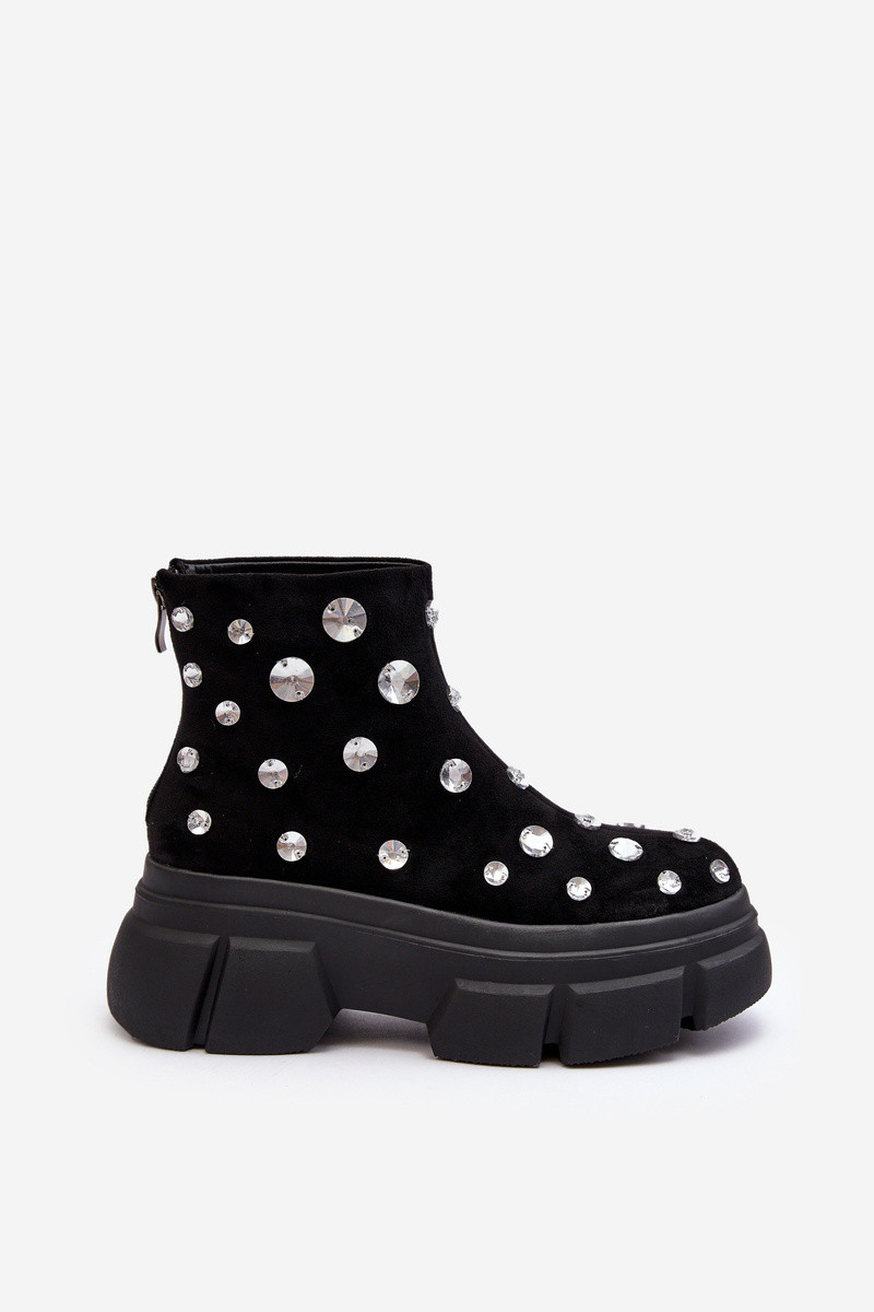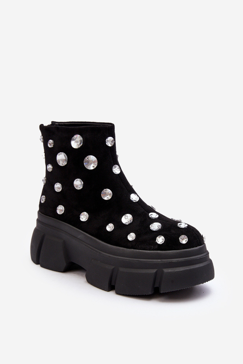 Semišové zateplené čižmy s trblietavými očkami D&A MR52-205 čiernej farby
