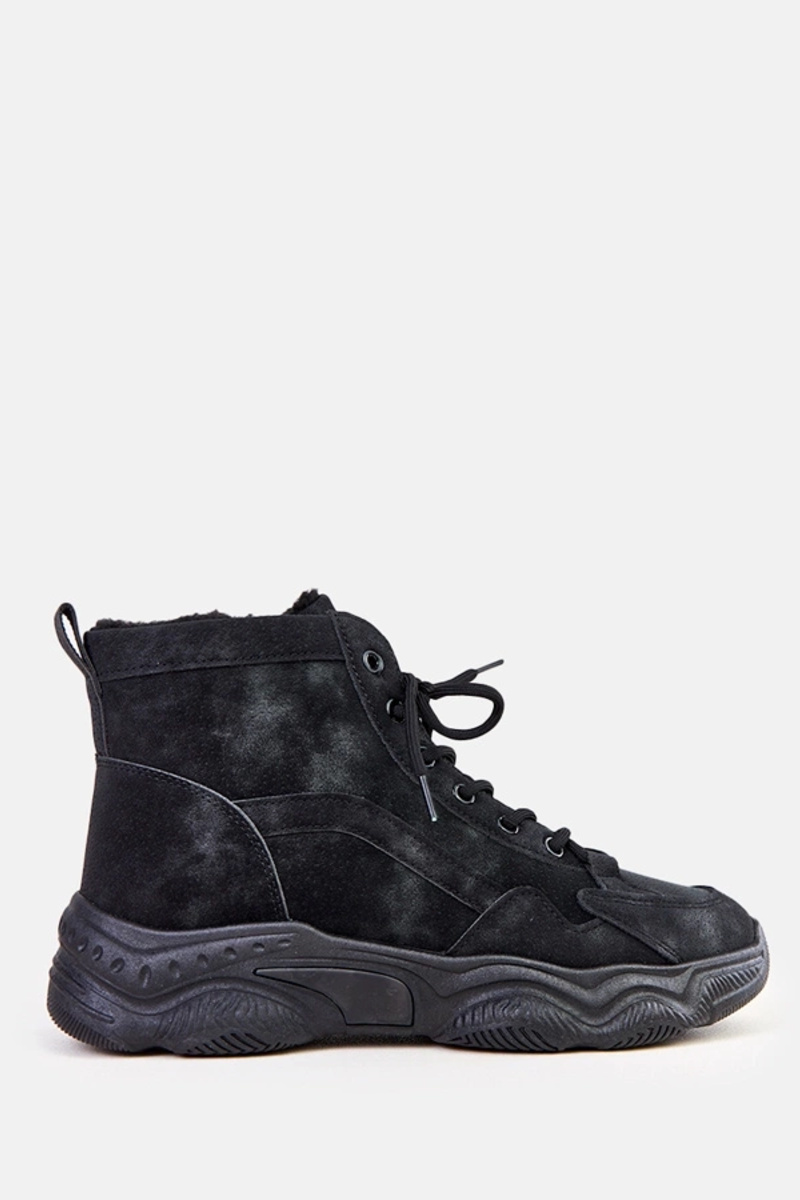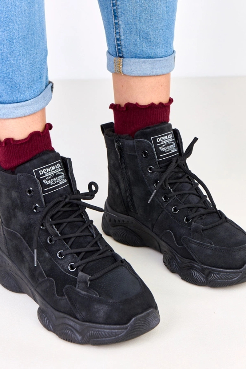 Čierne pracovné topánky z umelej semišovej kože s kožušinou, Chakles