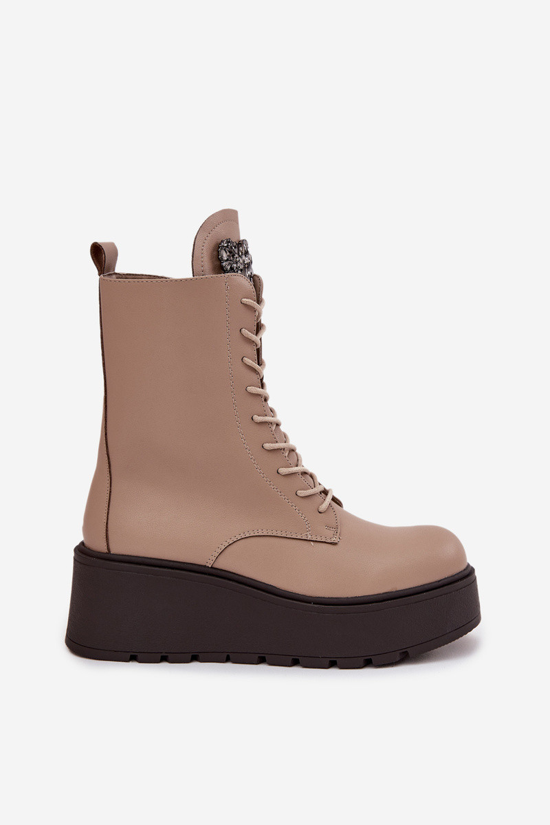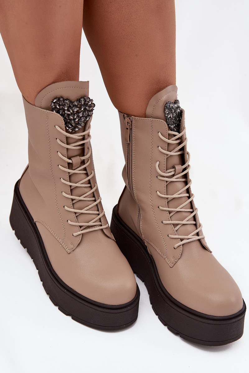 Umelé kožené dámske čižmičky s ornamentmi zateplené pieskovej farby Ulrika