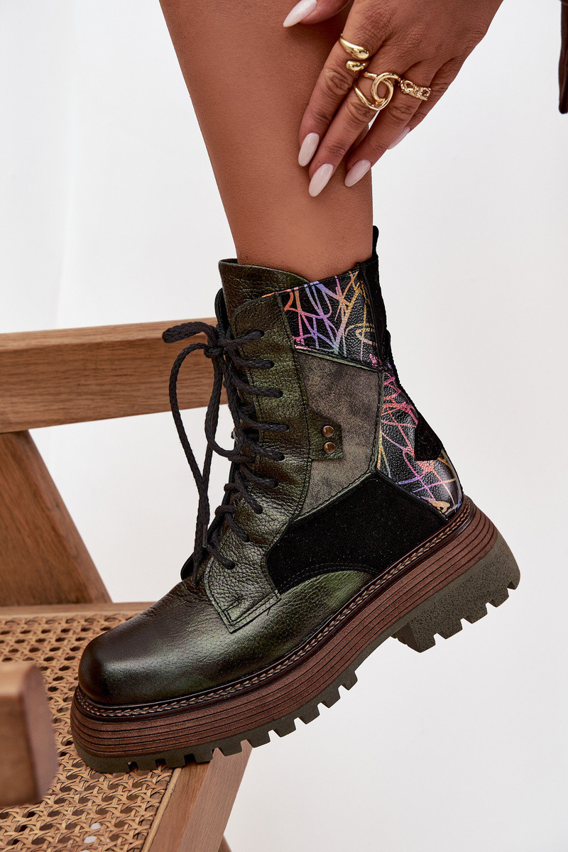 Kožené pracovné dámske členkové topánky s platformou Tai turiciejka 07104-09 khaki
