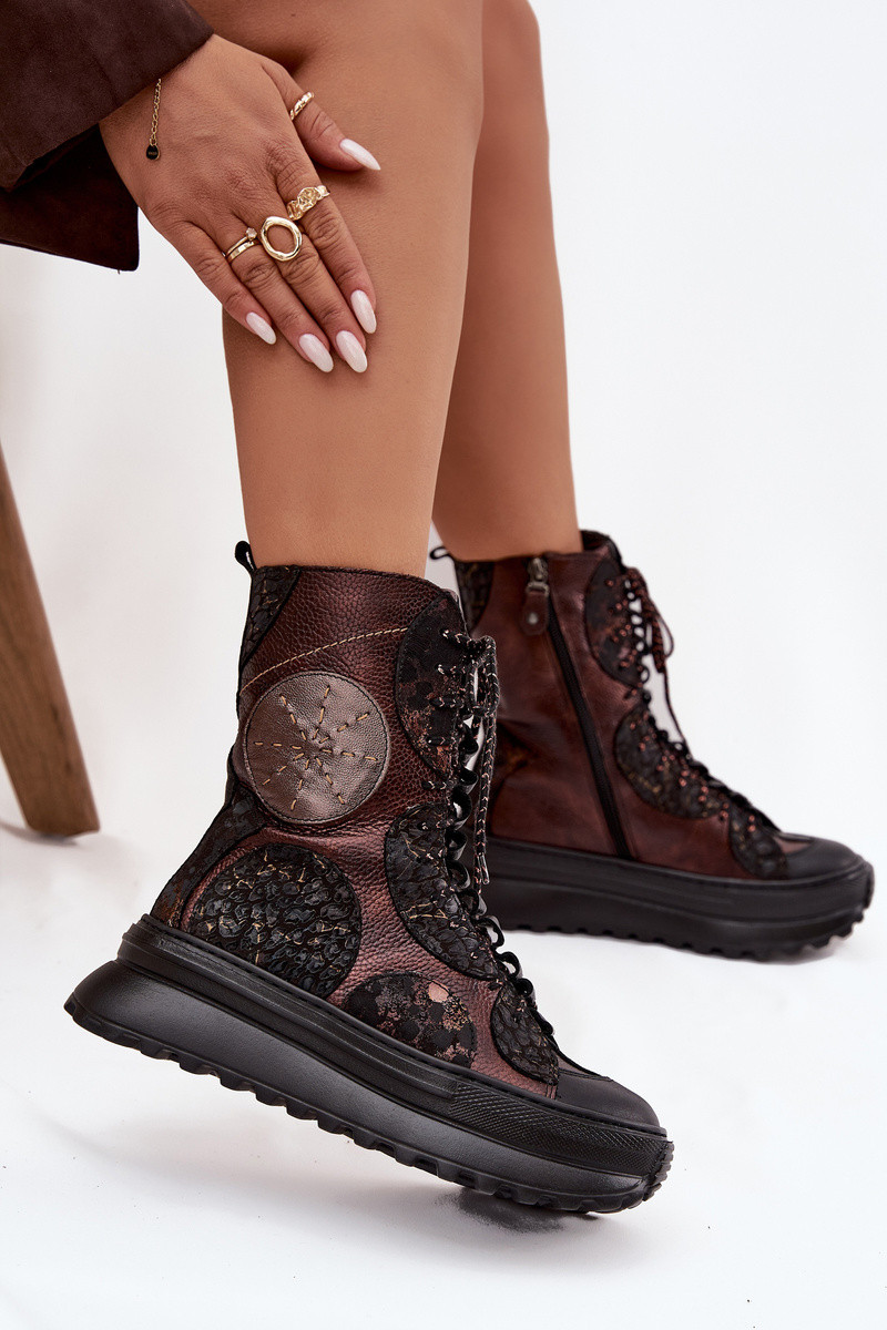 Kožené Čižmy s platformou zahriať sa Máciejka 06565-02 hnedá-zlatej farby