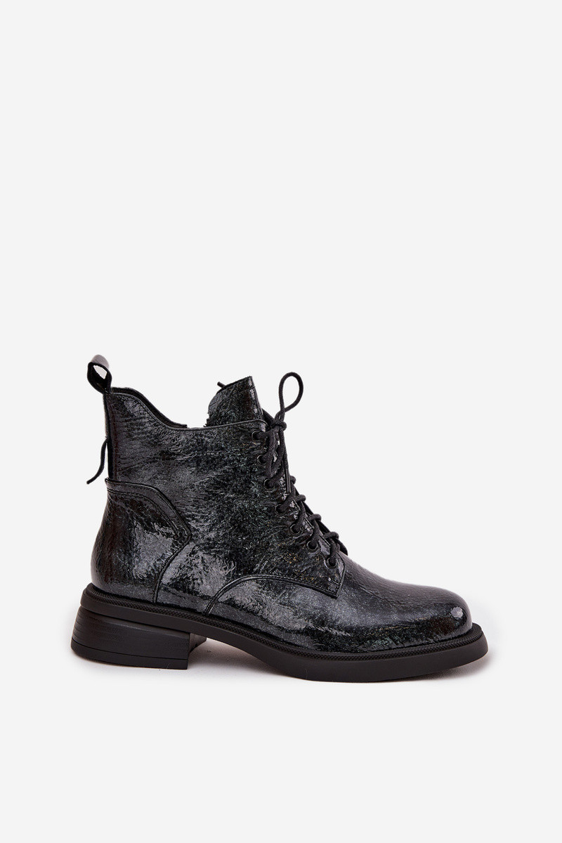 s lakovým efektom Kožené Dámske čižmy Zapnuté Klocku D&A LZ52-954 tmavomodrá