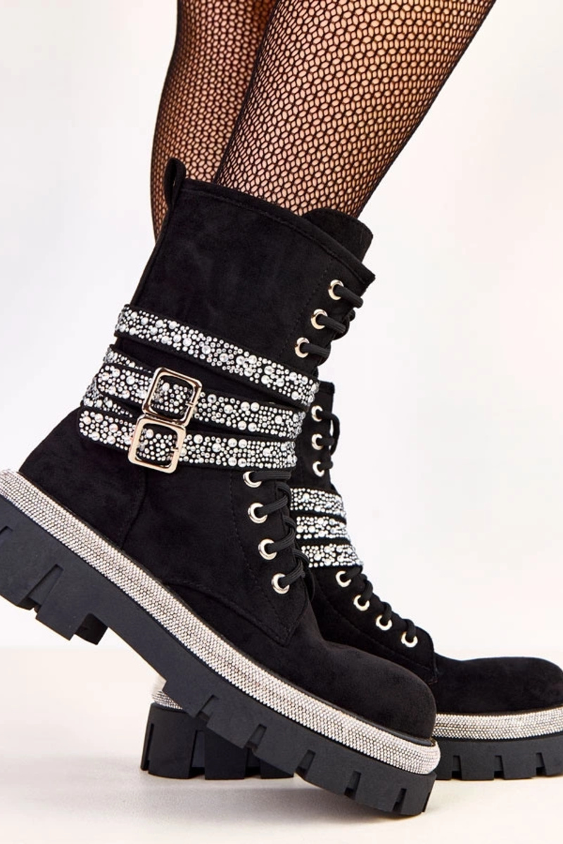 Čierne elegantné trekingové topánky zdobené zirkónmi Steveth