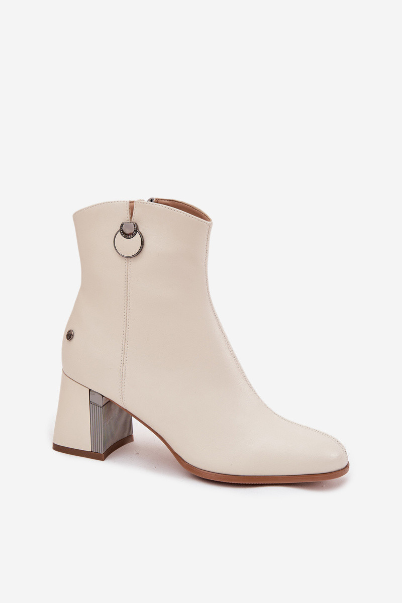 zahriať sa ČižmyZapnutéturalnej Skóry s podpätkami Máciejka K7203-04 béžová