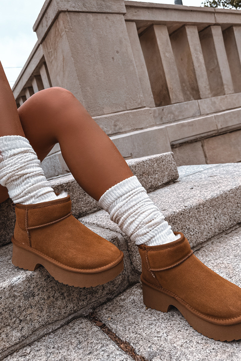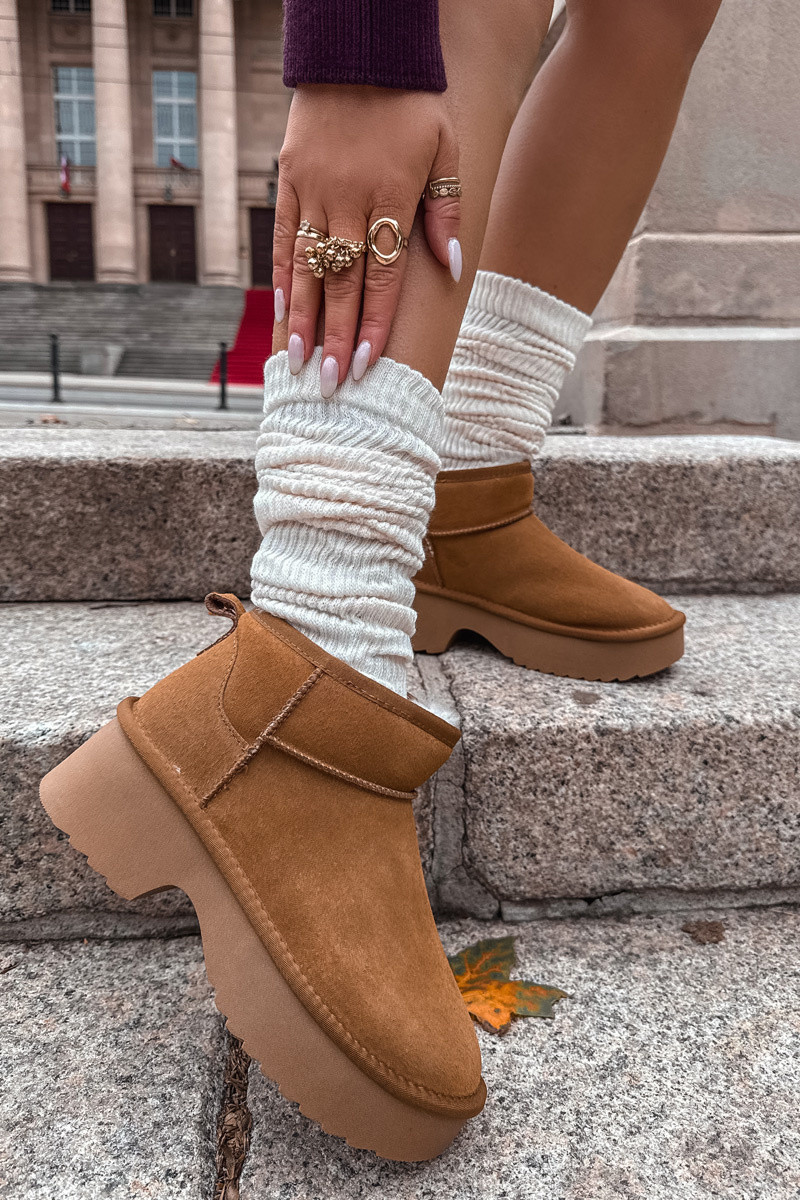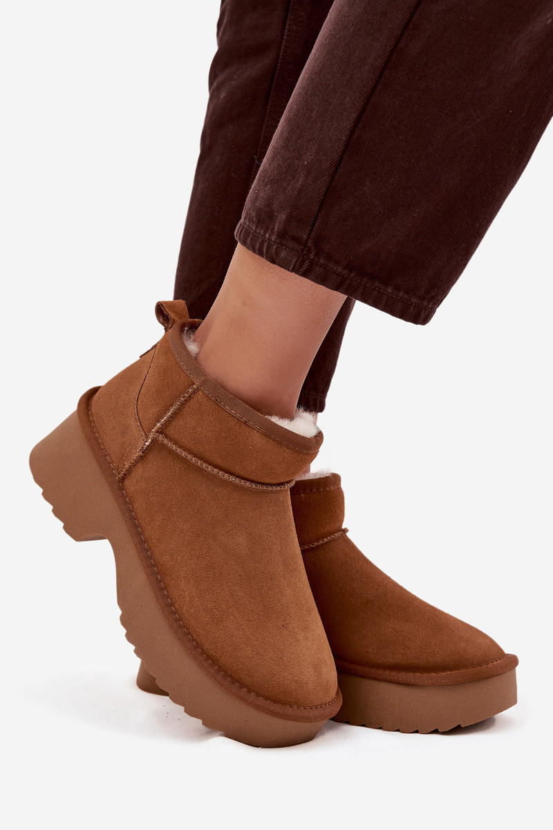 Dámske snehové topánky z prírodného semišu zateplené s kožušinou vo vnútri hnedej farby Milora