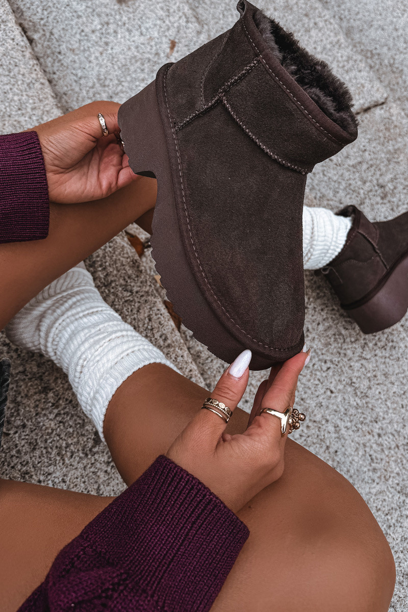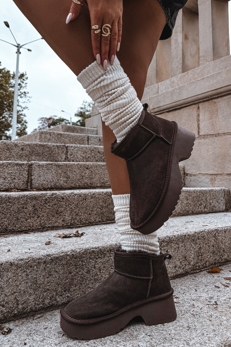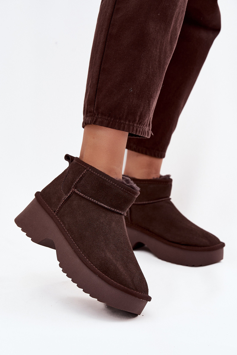 Dámske snehové topánky z prírodného semišu zateplené s kožušinou vo vnútri čokoládovej farby Milora