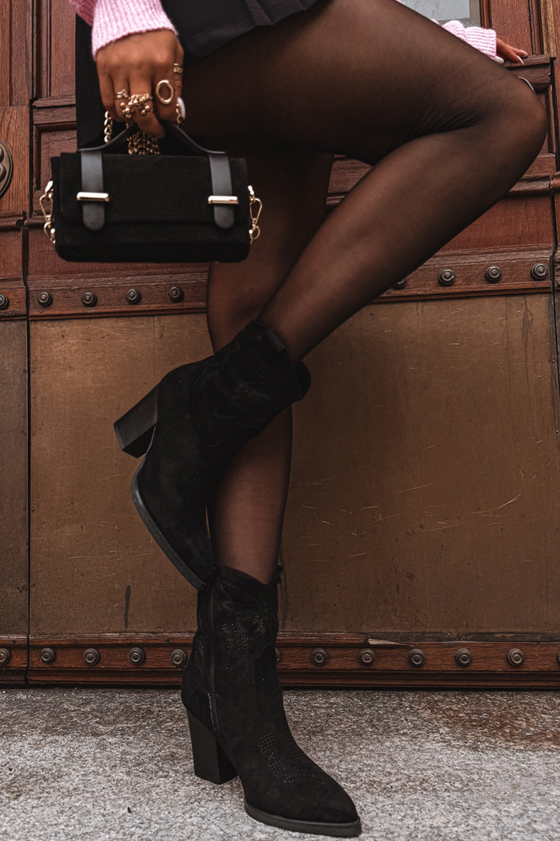 Dámske čižmy v cowboyskom štýle s podpätkami z umelej kože čiernej farby Carissa