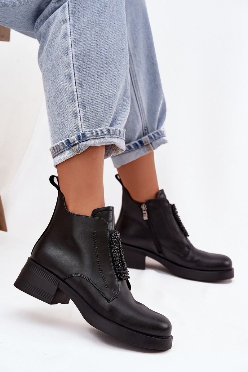 Kožené dámske čižmy s ornamentmi D&A JC52-869 čierne