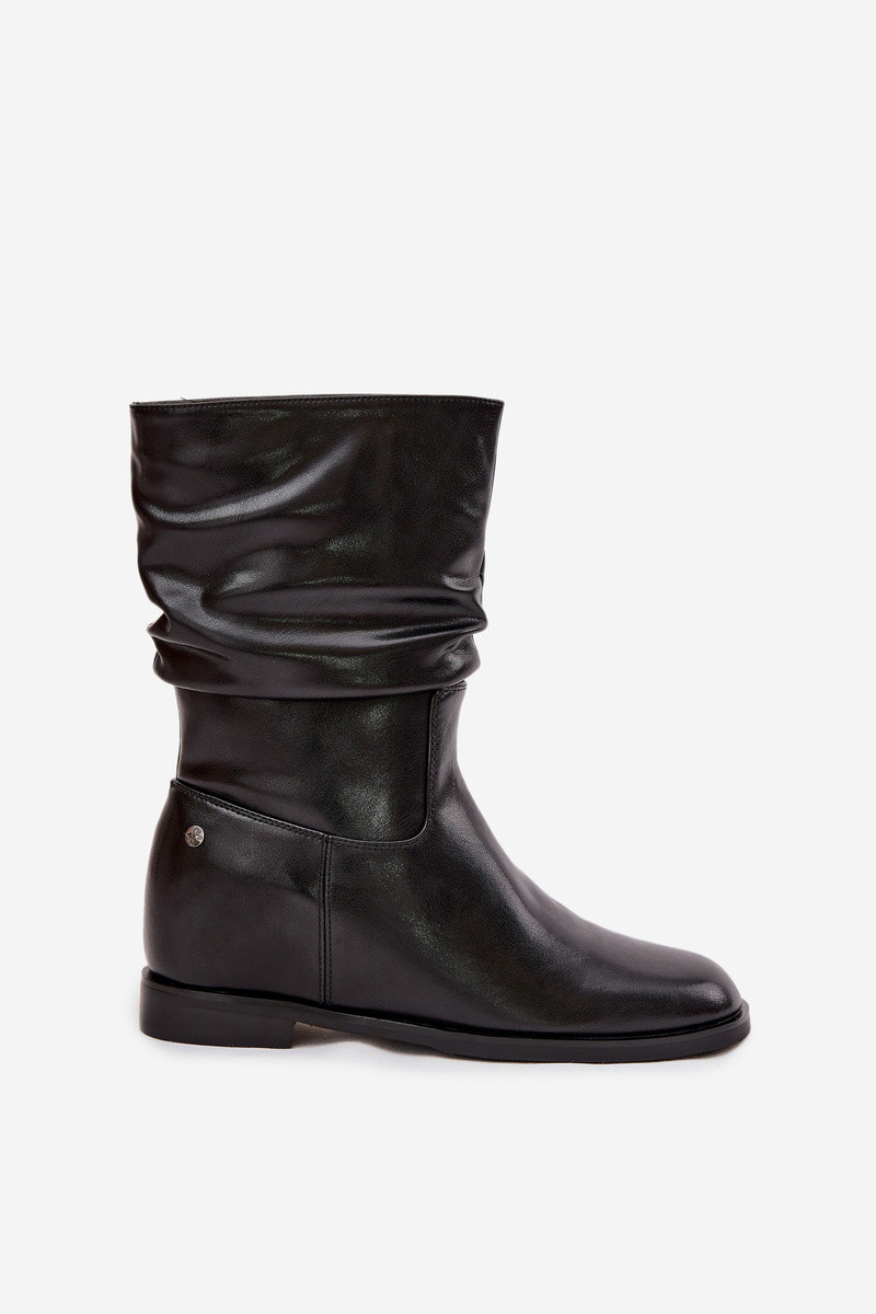 Čierne kožené dámske členkové topánky s volánikmi, zateplené Tai turiciejka K7211-01