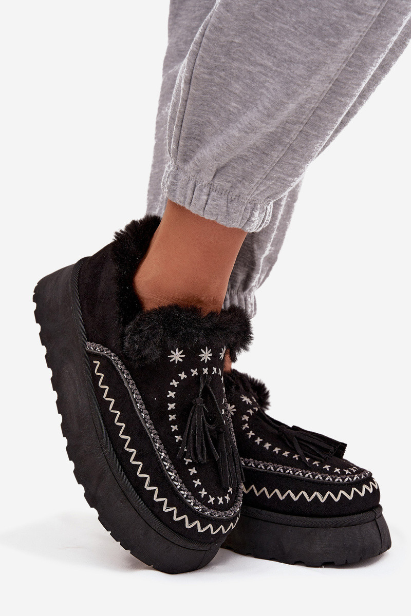 Dámske snehové čižmy s platformou, kožušinou a strapcami v čiernej farbe Ferayne