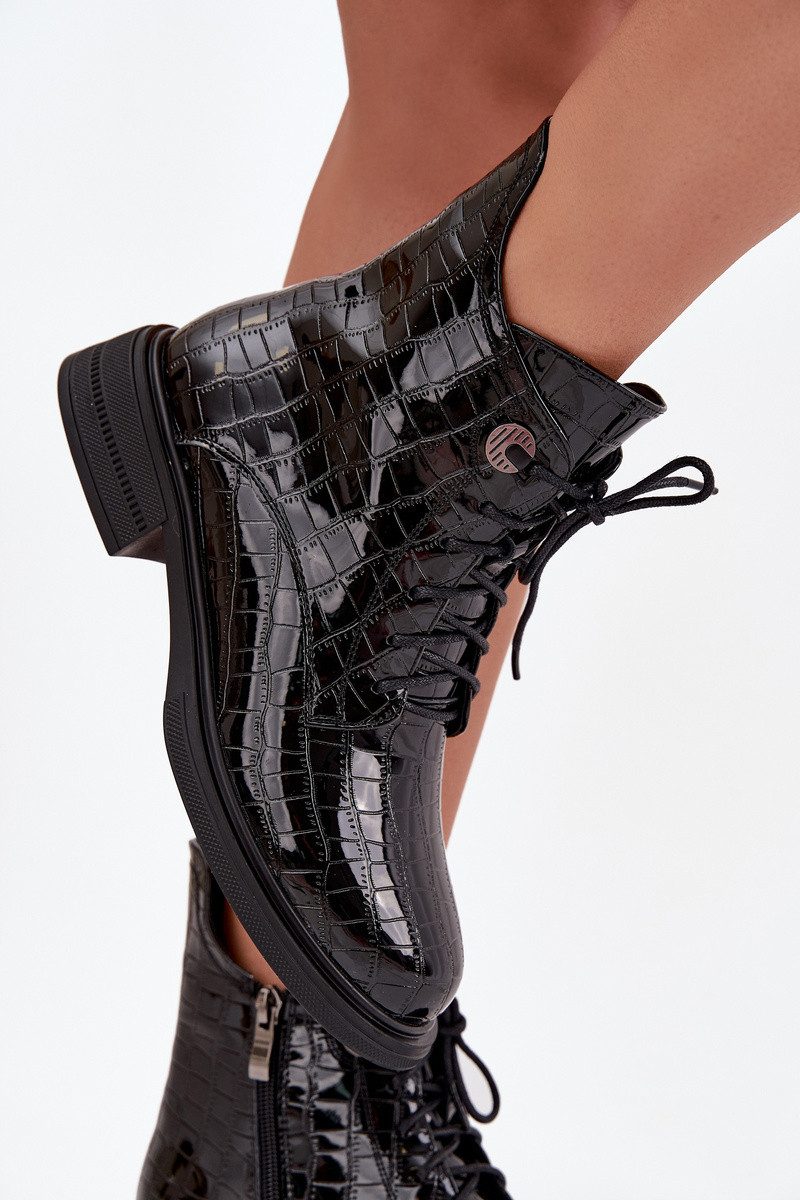 Kožené s lakovým efektom Čižmy S razením zahriať sa čierna Juviane