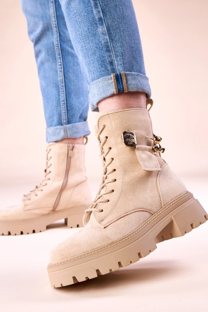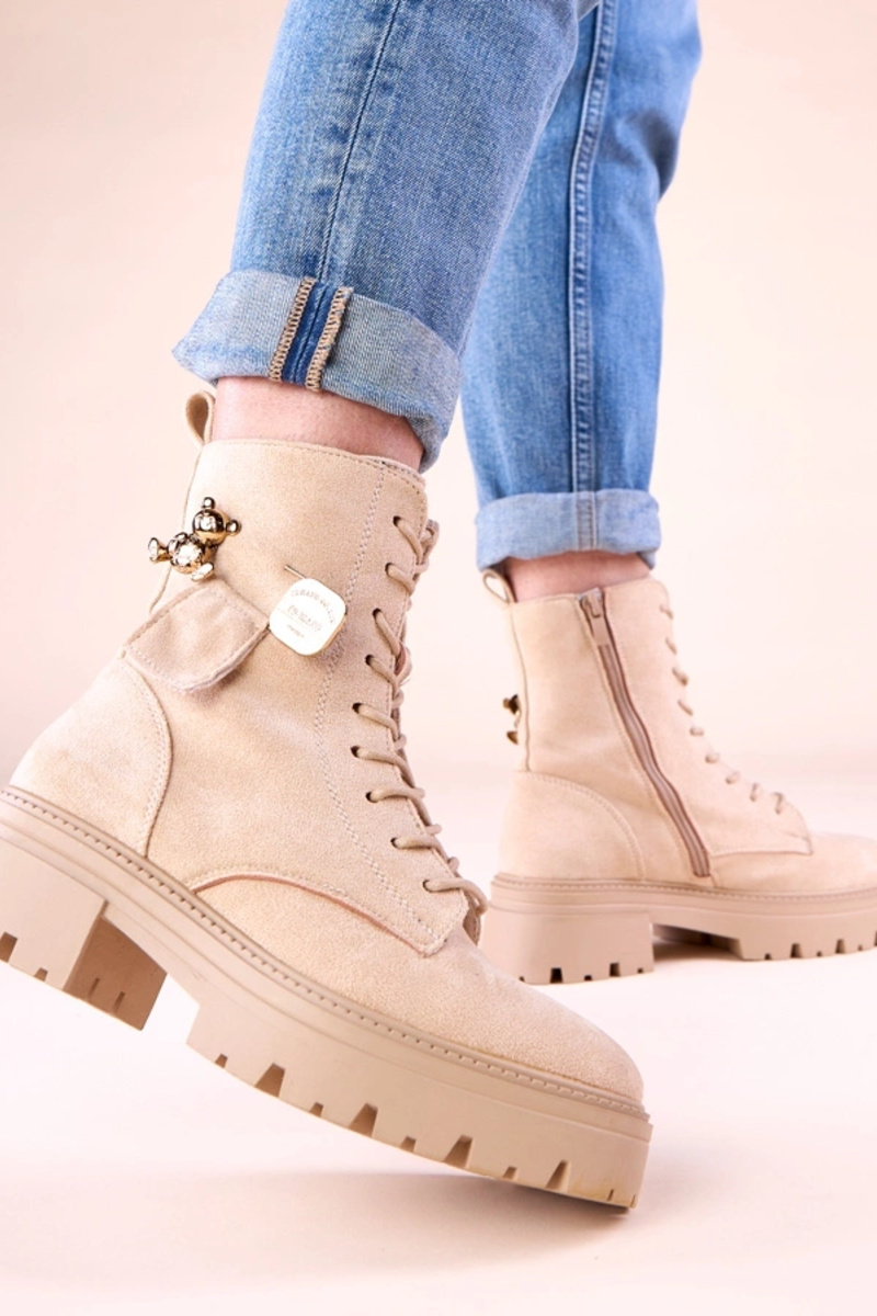 Pieskové dámske traperky so zlatým medvedíkom Messey