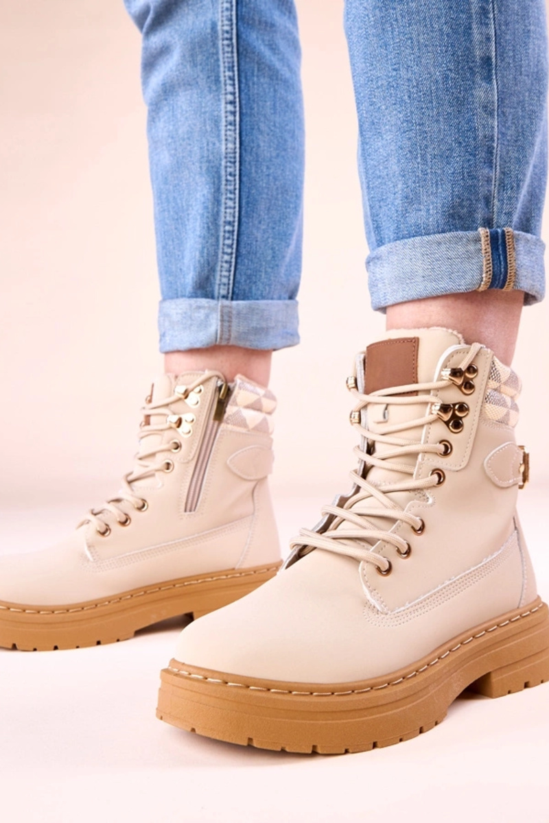 Pieskové zateplené traperky z matnej syntetickej kože Selio
