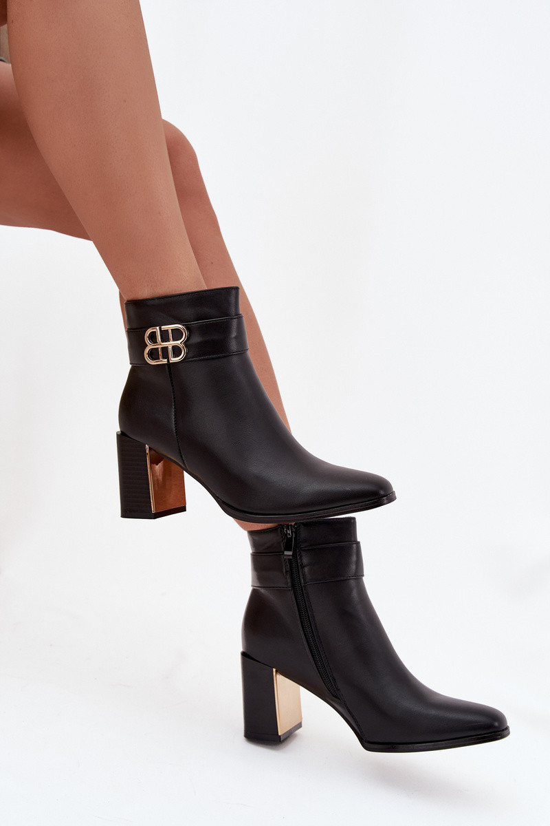 Dámske čižmy s remienkami a zlatými detailmi čierne „Galinne"