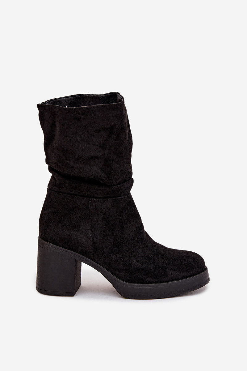 Dámske čižmy s volánmi a podpätkami, zateplené, čierne „Amoria"