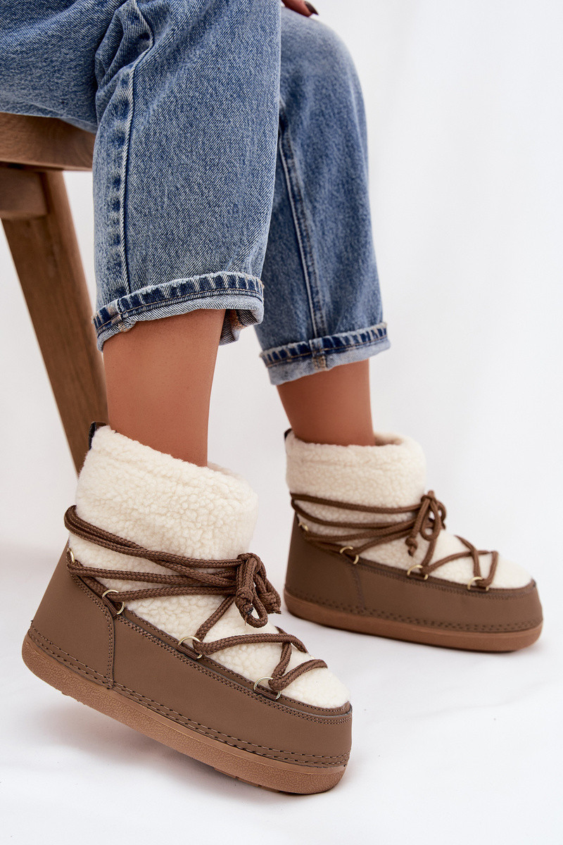 Snehule Dámske s kožušinou Typu Baranek s popruhmi béžová Belira