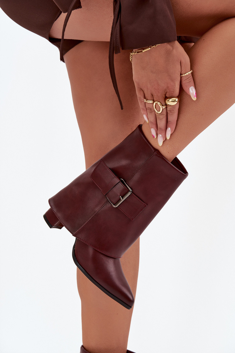Zateplené čižmičky s podpätkami a ohnutým zvrškom a sponami bordovej farby Ylenara