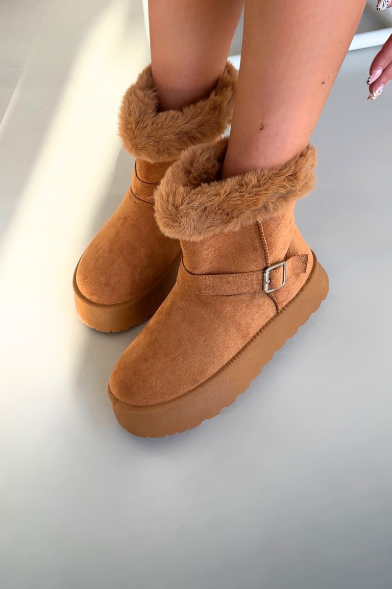 Snehule Dámske s platformou s prackami a kožušiny Hnedá farba Jesella
