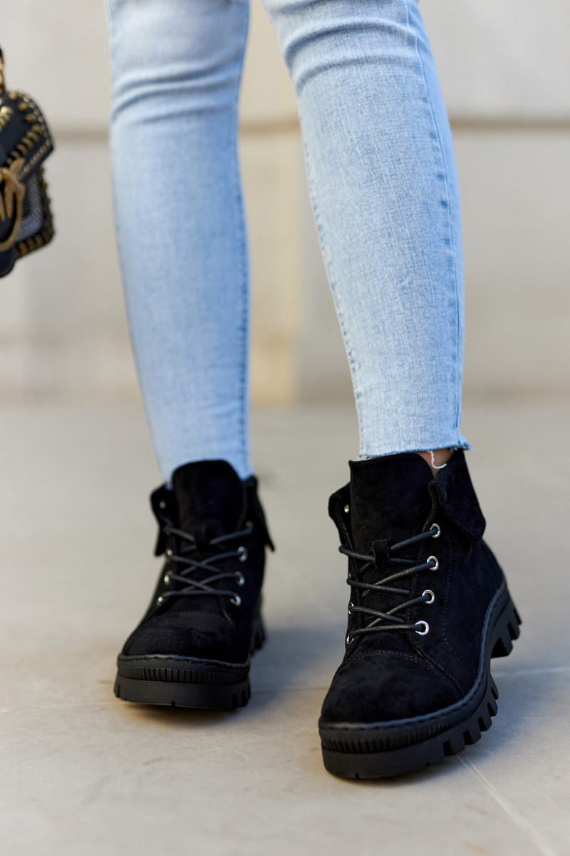 Jarné členkové topánky z prírodnej semišovej kože s remienkami čierne Dalles
