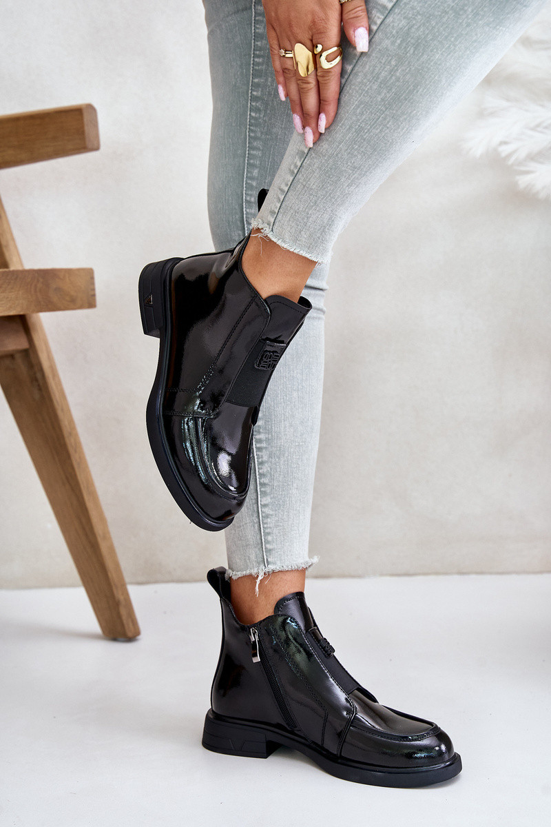 Kožené s lakovým efektom Dámske čižmy Zapnuté Hrad D&A JC42-24 čierna