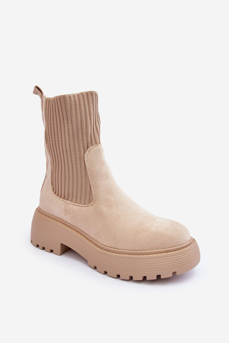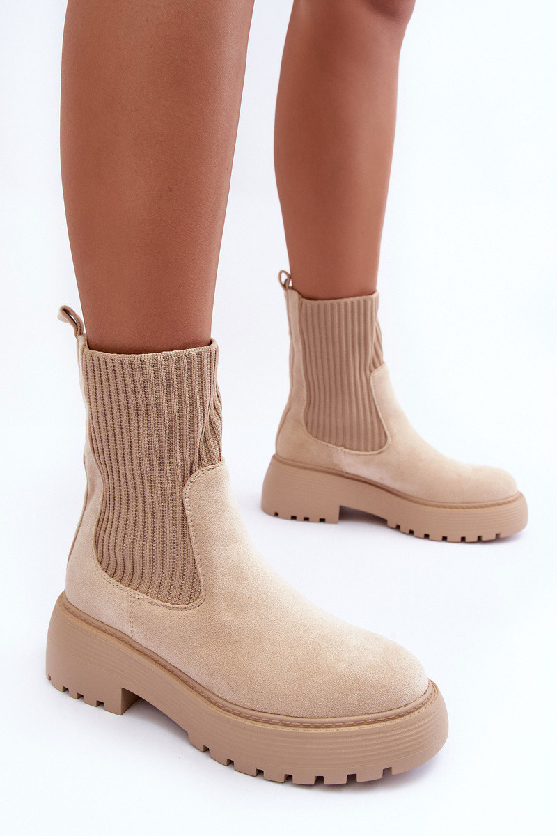 Semišové topánky s topánkami typu ponožky s platformou A Ploché Pätky béžová ReInam
