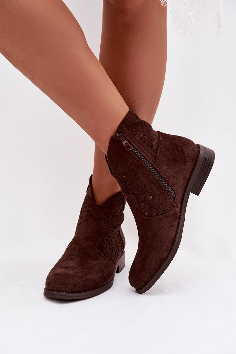 Ažúrové dámske čižmy s širokými podpätkami S.Barski HY61-8026 čokoládové