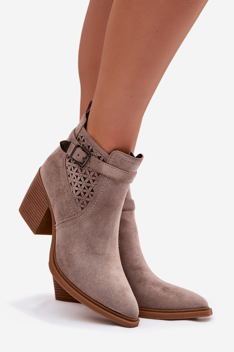Dámske čižmy s dierkovanými prvkami a prackami v pieskovej farbe Deloriah