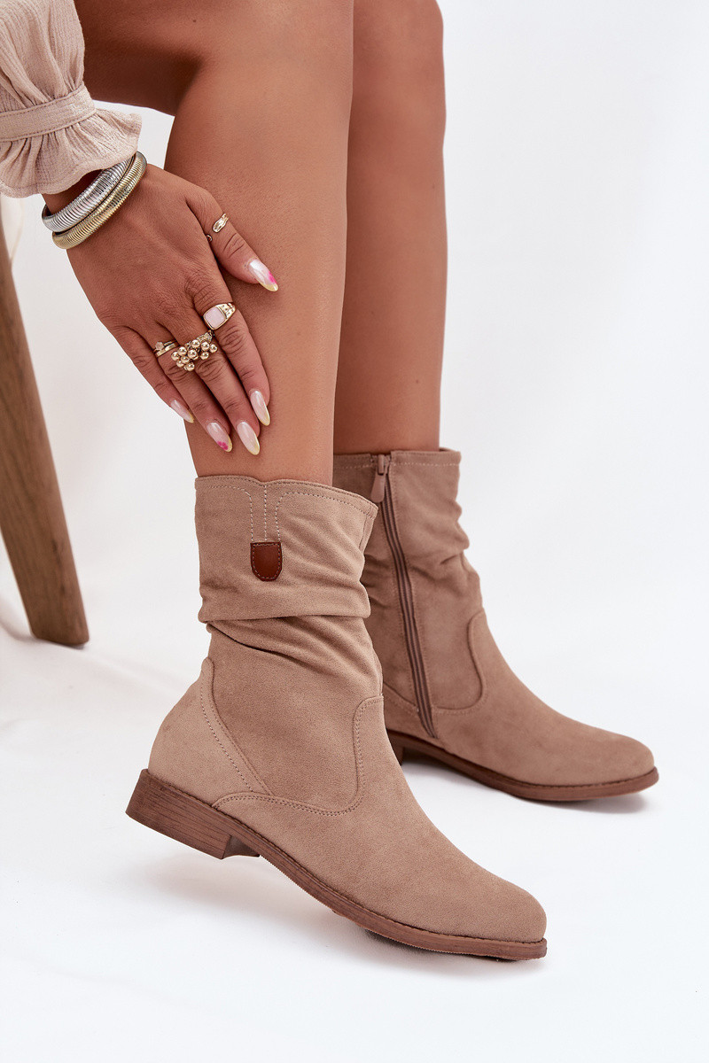 zahriať sa Dámske čižmy S nazberaným zvrškom so širokými podpätkami béžová Krisia