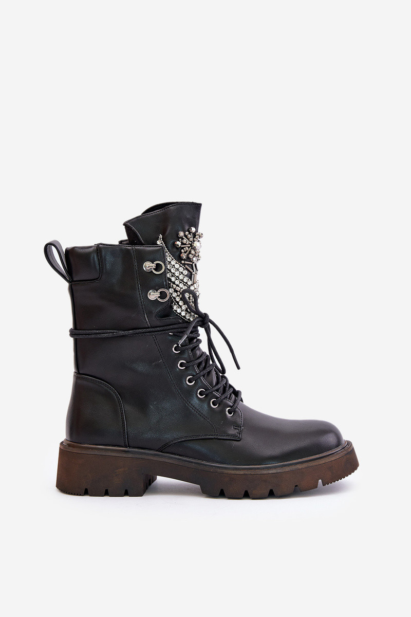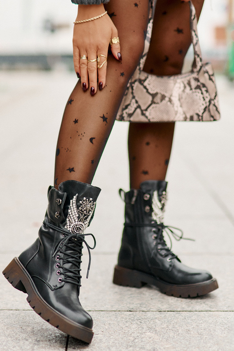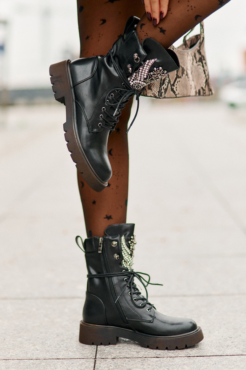 Pracovné členkové topánky z umelého kože so zdobením zateplené D&A MR880-080 čiernej farby
