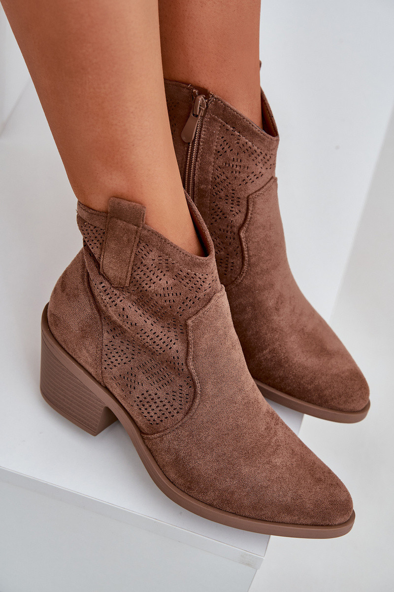 Cowboyské čižmy z umelého perforovaného semišu S.Barski HY51-061 hnedej farby