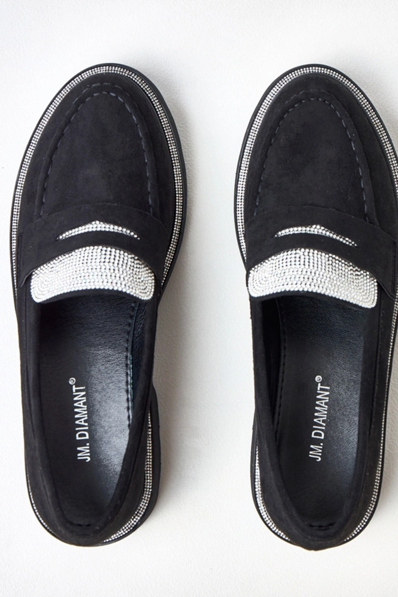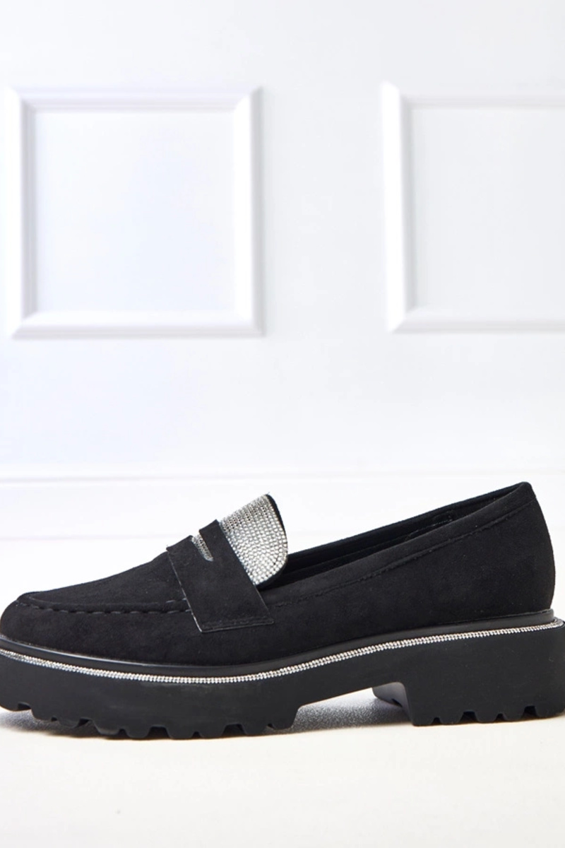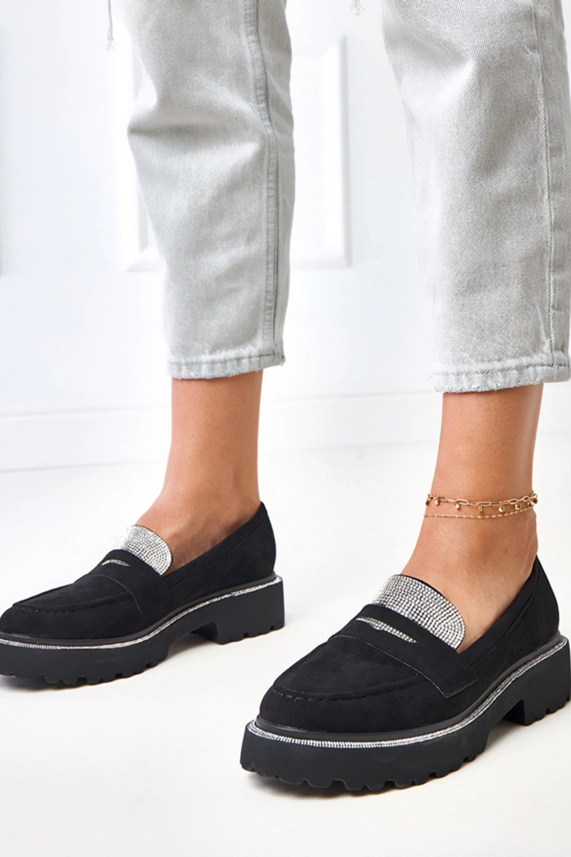 Čierne mokasíny z umelého semišu zdobené zirkónmi Kloren