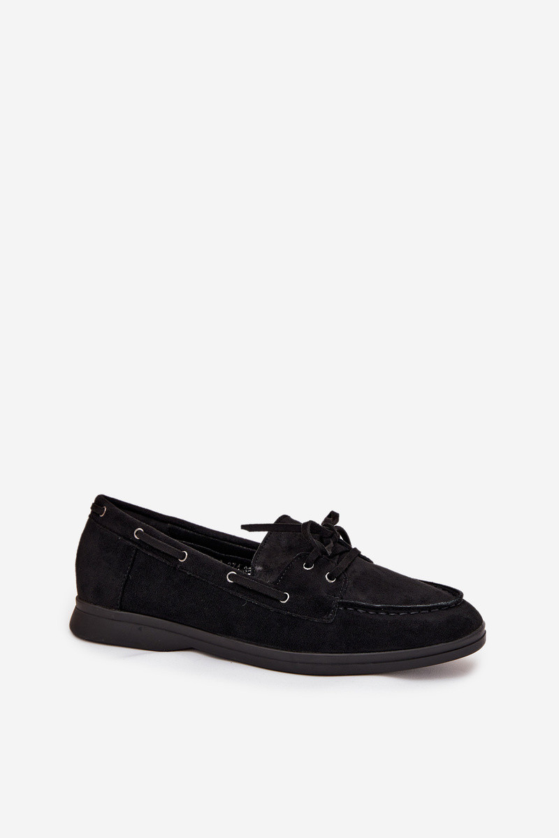Módne mokasíny bez podpätku so štýlovými detailmi čiernej farby Zalina
