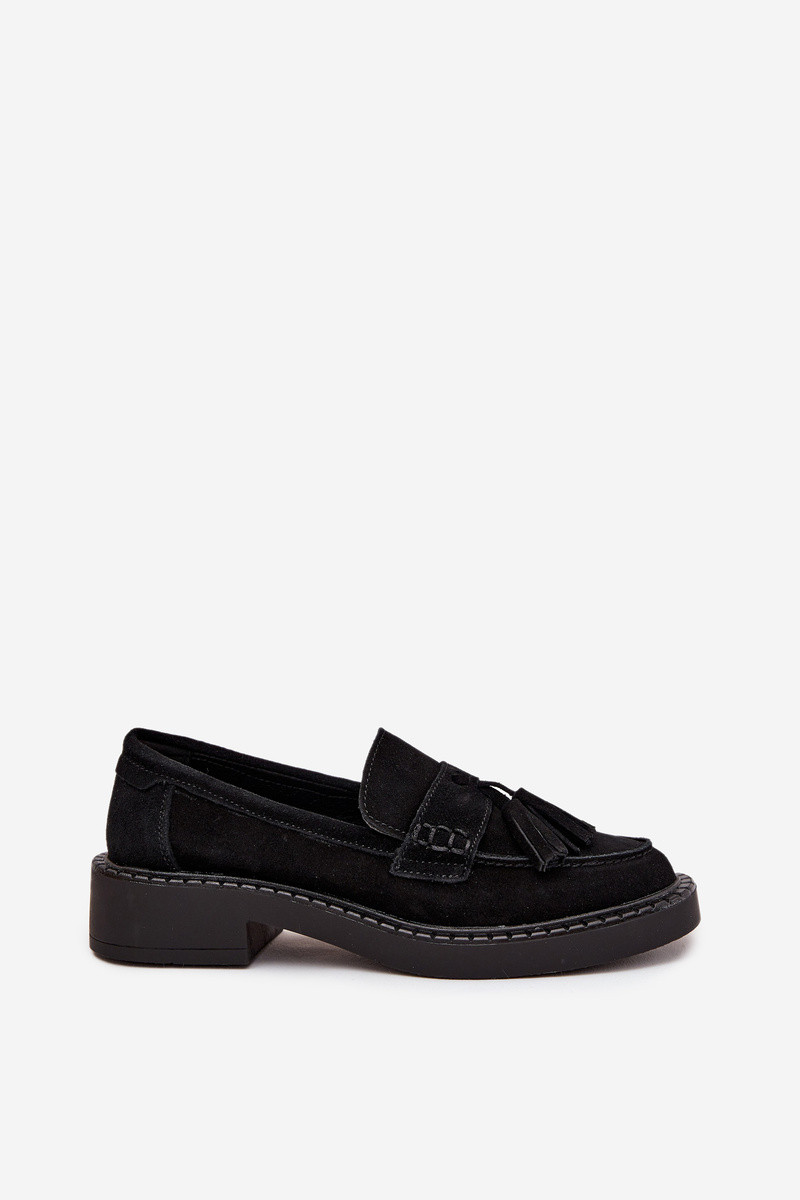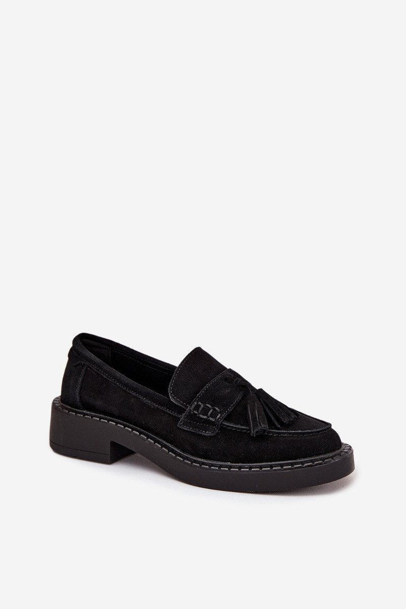 dámske mokasíny zo semišu so strapcami D&A TIN107 čierna