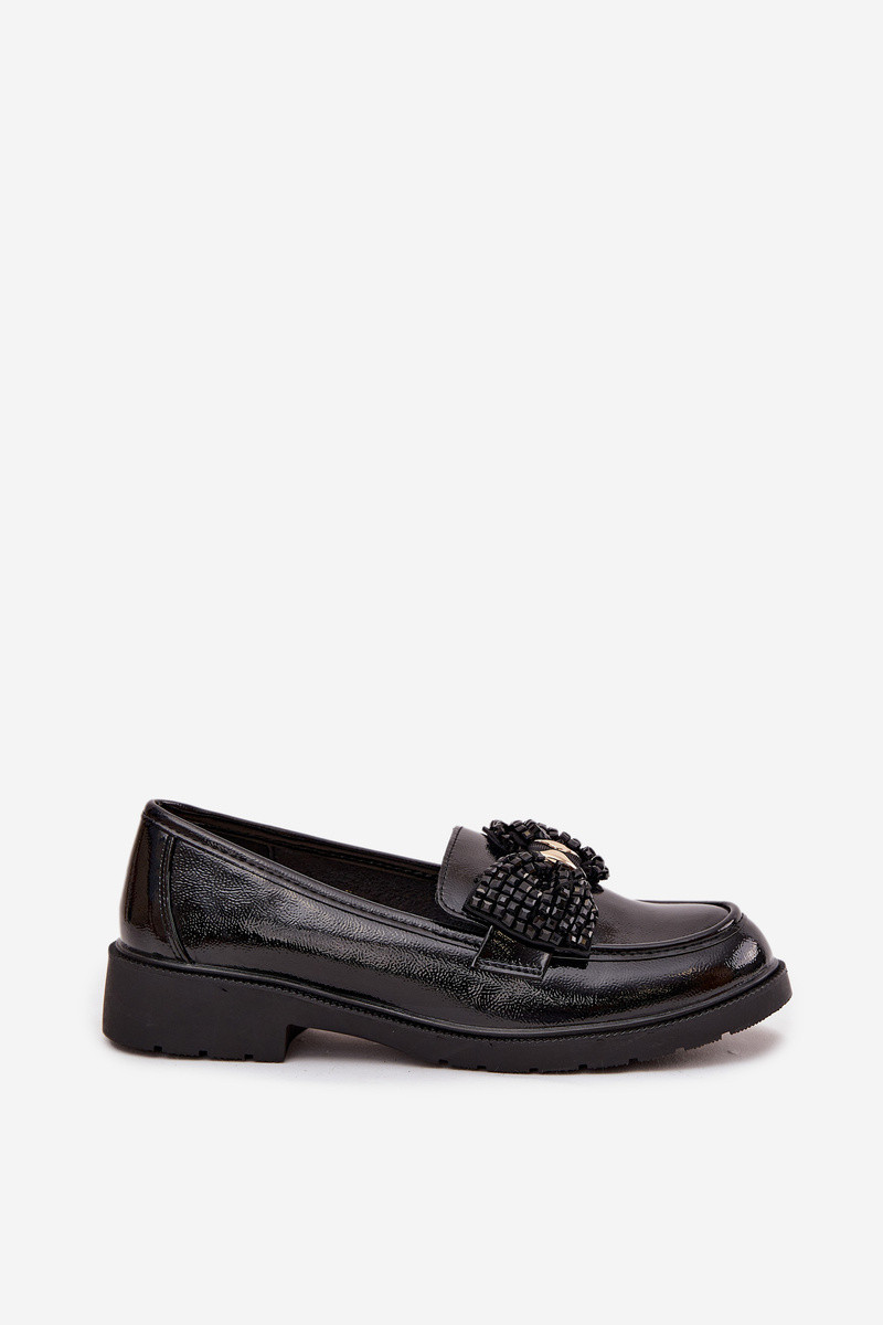 Lakované mokasíny dámske s mašľami S.Barski HY52-319A čierne