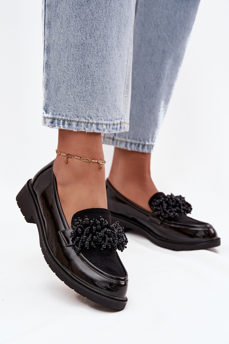Dámske mokasíny s lakovaným efektom S.Barski HY52-369B čierne