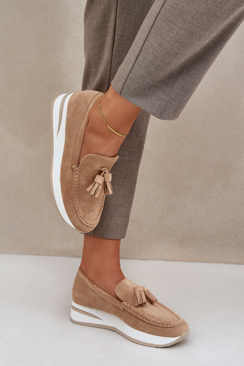 Mokasíny Zapnuté Jemném Koturnie z eko semišuoIne béžová Challavia