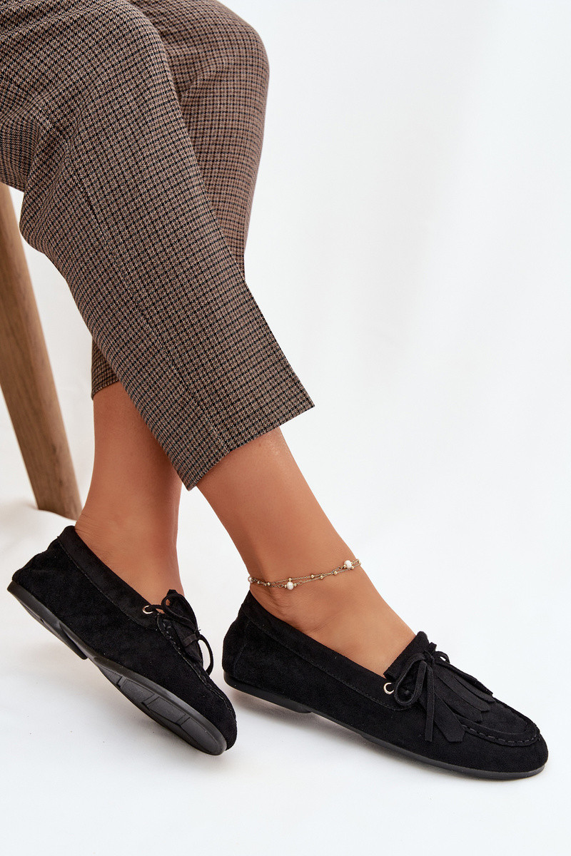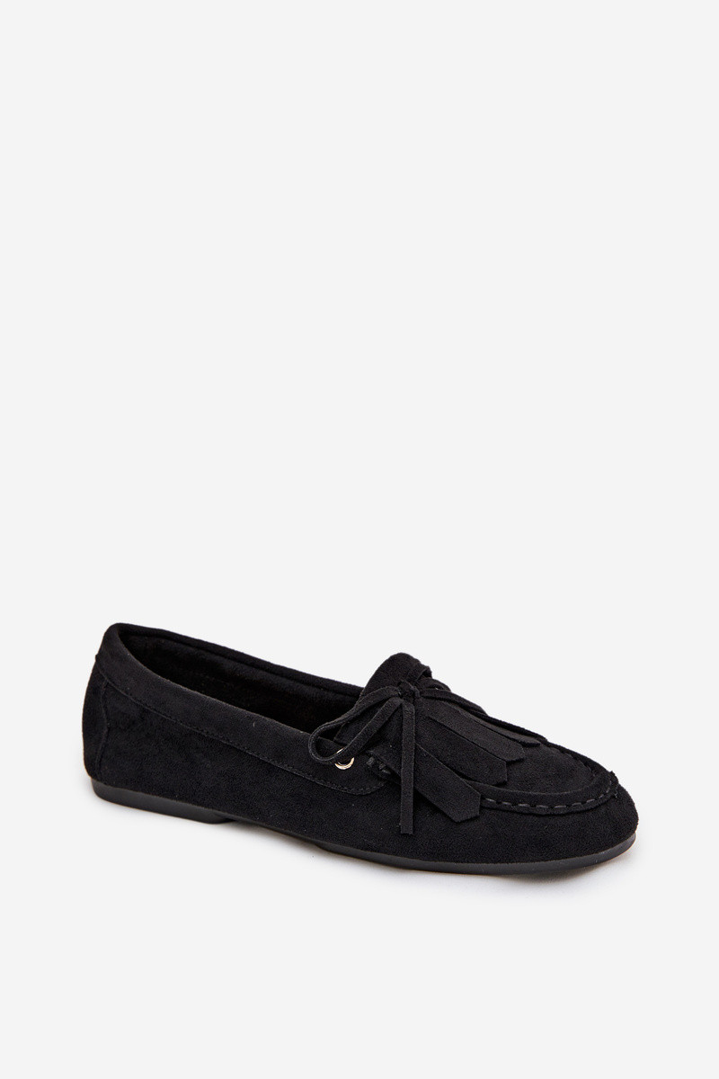 Čierne Glorina dámske mokasíny so štýlovými detailmi a třásňami