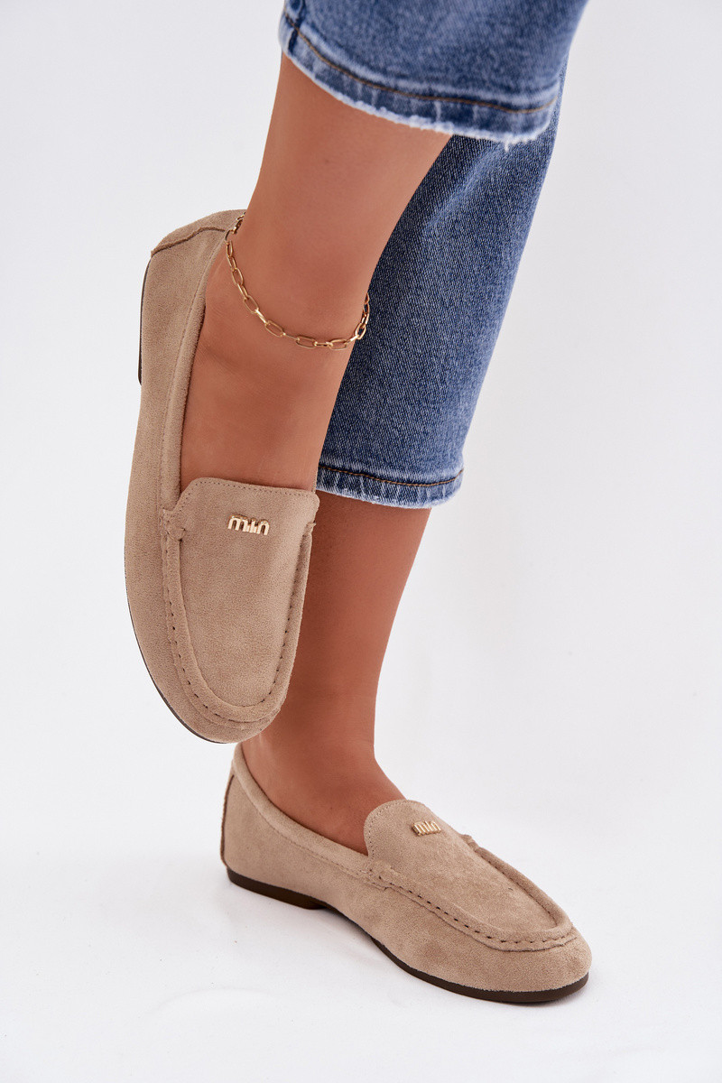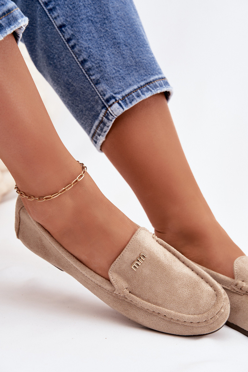 Ženské mokasíny so zlatými detailmi pieskovej farby Sarivelle