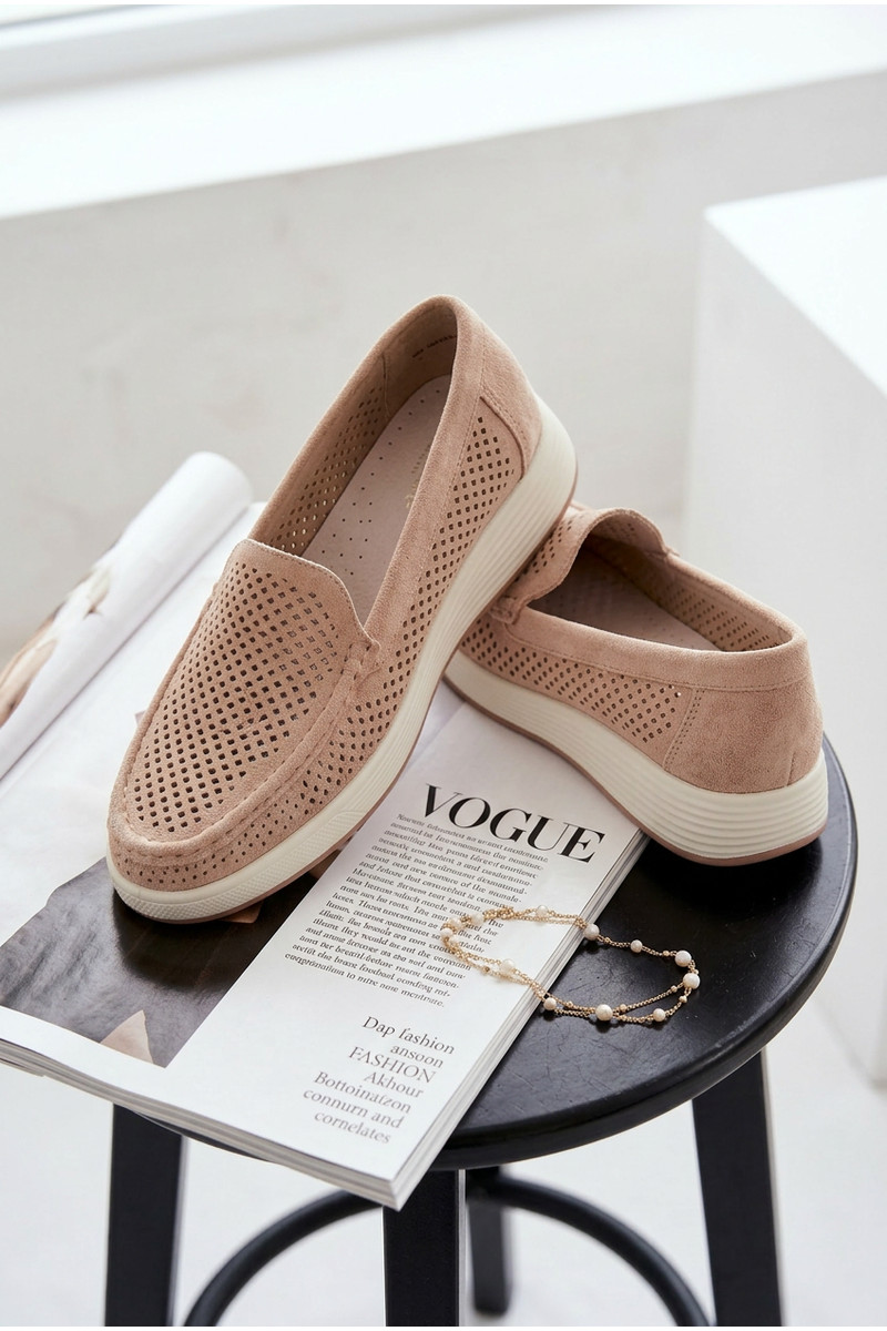 Dámske mokasíny s perforovanými prvkami Sergio Leone MK097H pieskovej farby