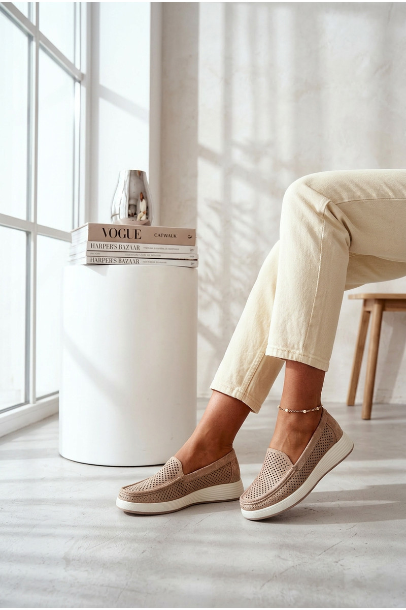 Dámske mokasíny s perforovanými prvkami Sergio Leone MK097H zlatej farby