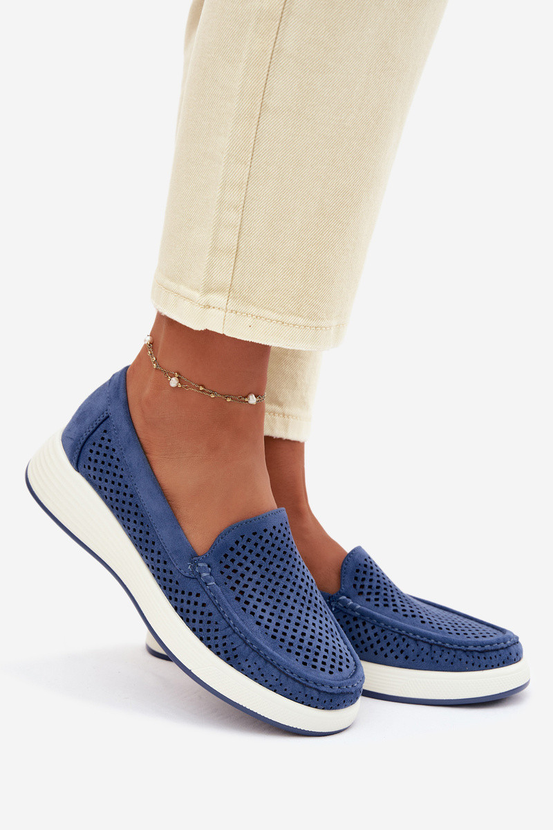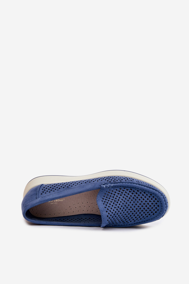 Dámske mokasíny s perforovanými prvkami Sergio Leone MK097H modrej farby