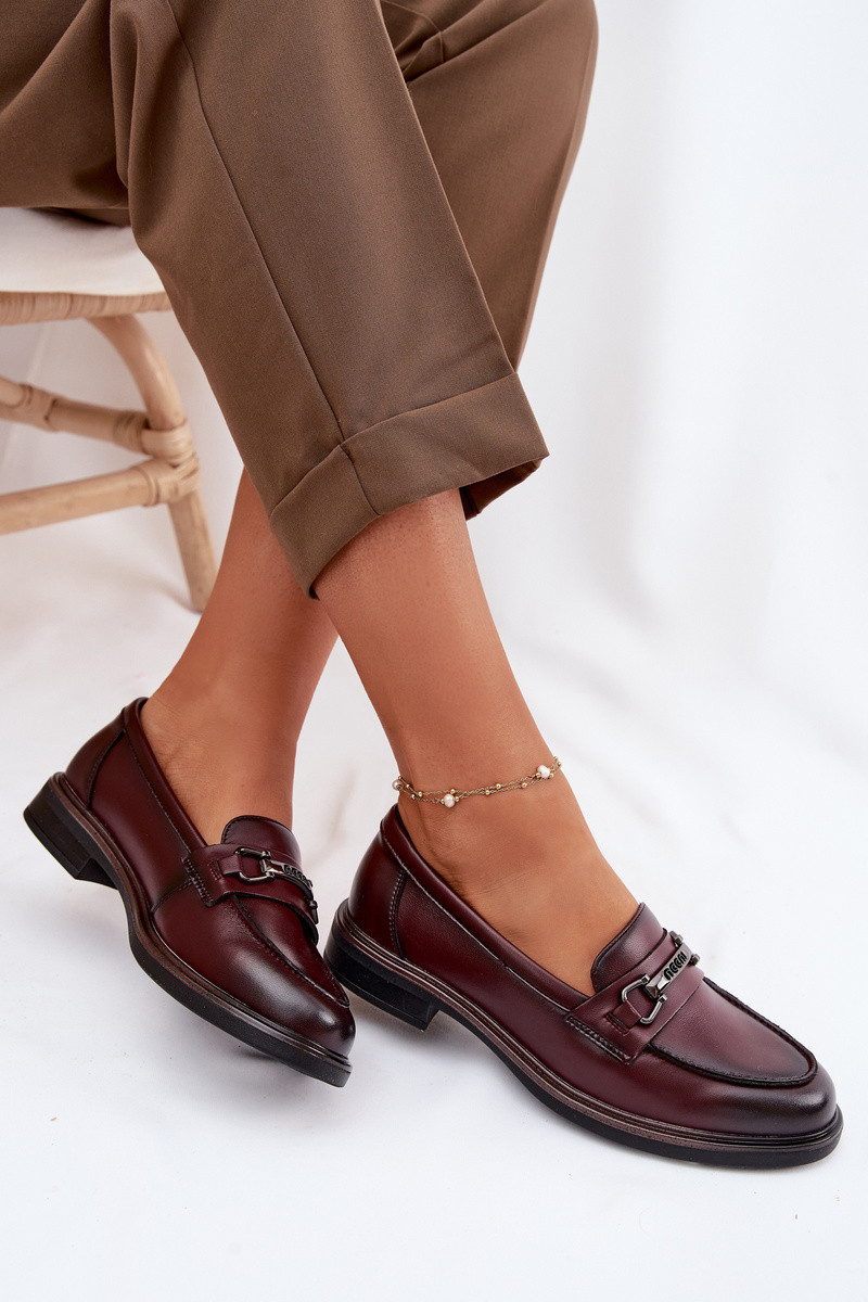 Dámske kožené mokasíny Vinceza 39983 bordovej farby