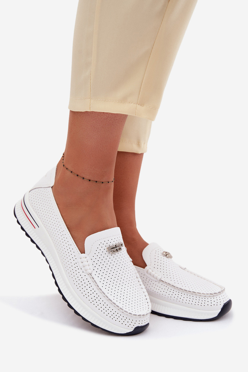 dámske mokasínyZapnutéturalnej Skóry biela farba Demela