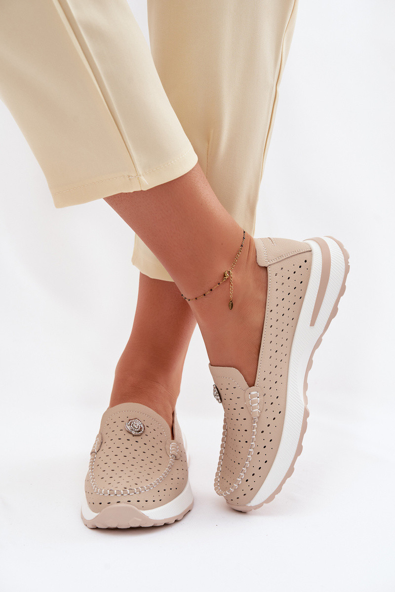 s prvkami prelamovania dámske mokasínyZapnutéturalnej Skóry béžová Kemela