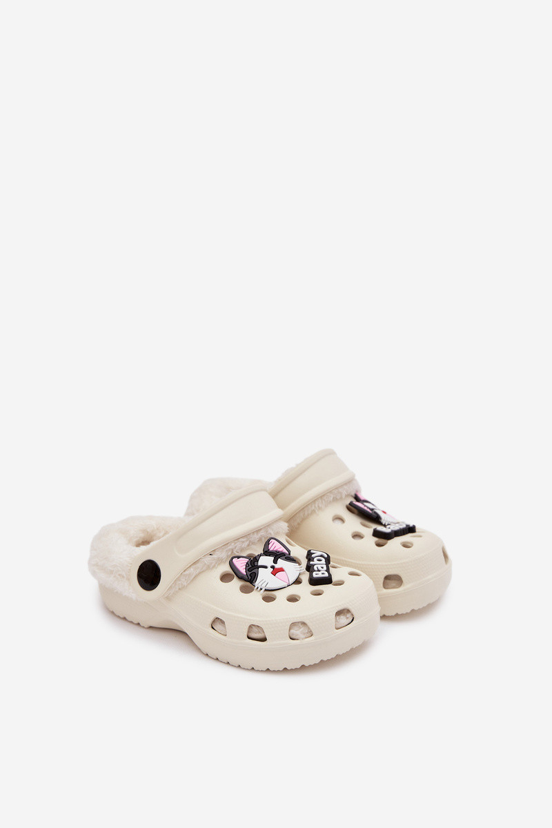 Detské teplé šľapky s kožušinou vo vnútri, krémovej farby „Cerelle"