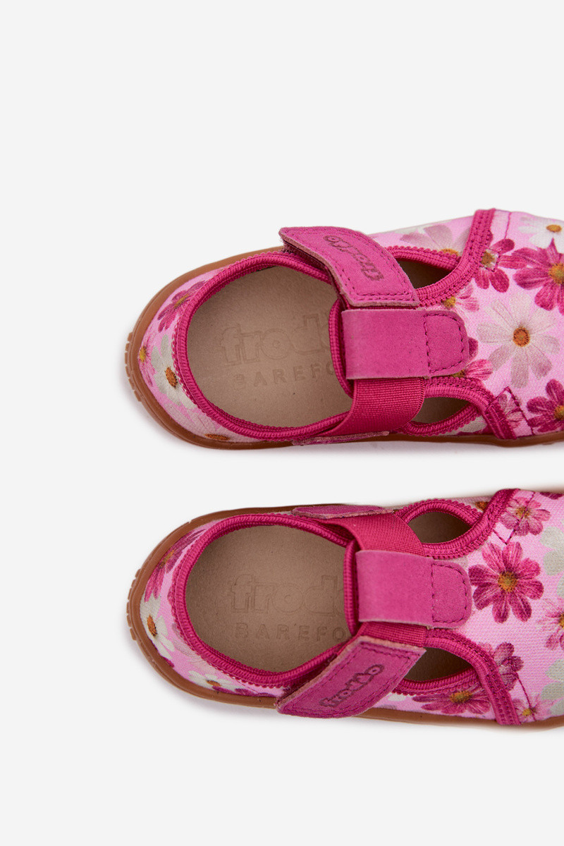 Papuče deti s lepiacimi spojkami s kvetmi Barefoot Froddo Cannvas G1700439-4 Ružová