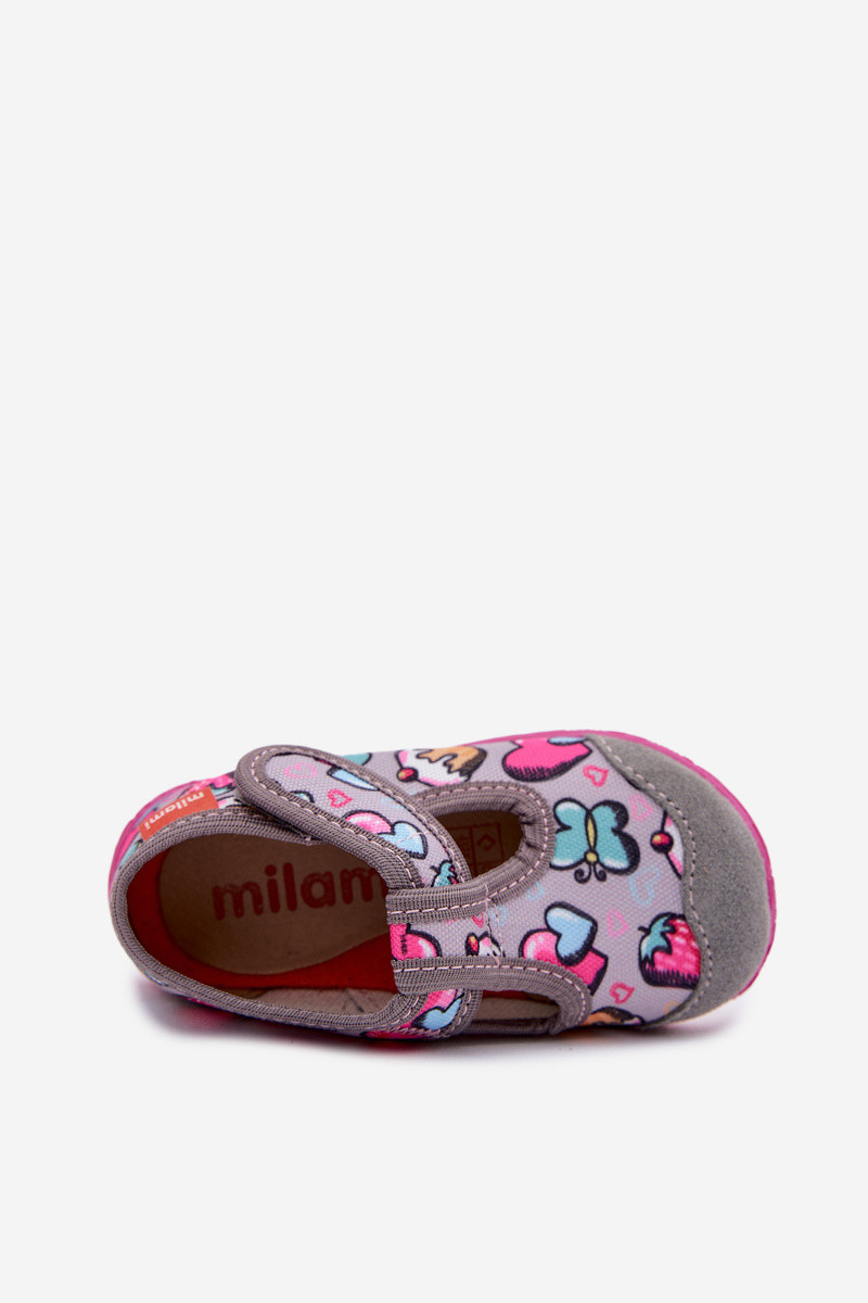 Papuče Milami deti s lepiacimi spojkami sivá Jasimrra