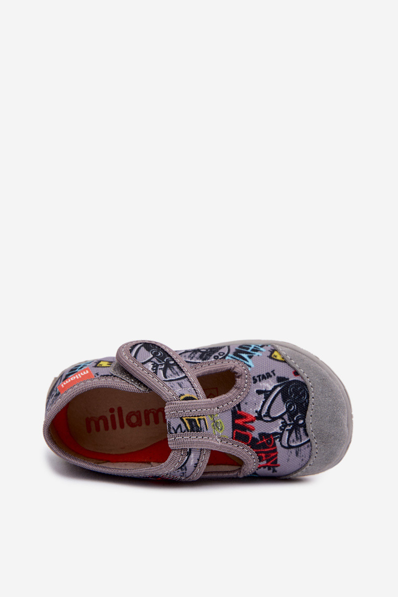 Papuče Milami deti s lepiacimi spojkami sivá Jasimrra